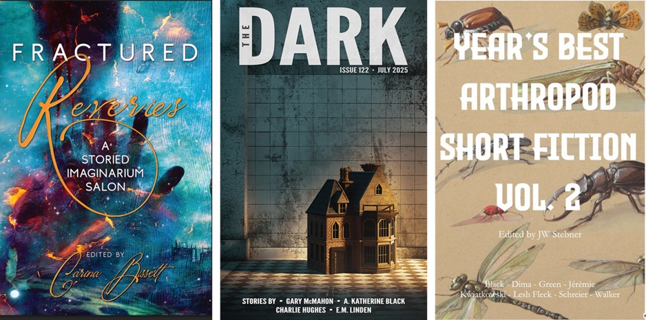 Recently out: stories in Fractured Reveries, The Dark Issue 122, and the Year’s Best Arthropod Short Fiction Vol.2!